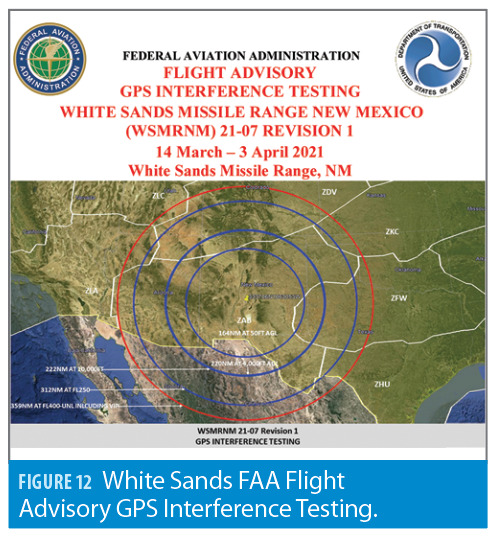 (9) Flight Advisory GPS Interference Testing White Sands Missile Range New Mexico (WSMRNM) 21-07 REVISION 1. March 10, 2021.