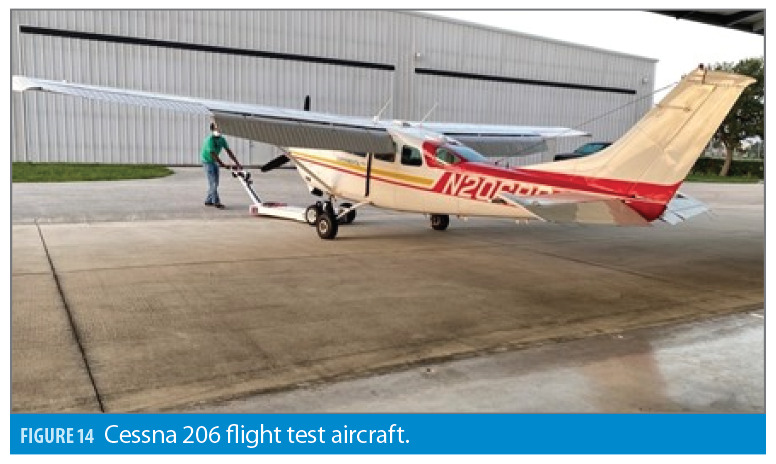In February and March of 2022, Collins performed two dedicated flight tests in a Cessna 206 flight test aircraft, pictured in Figures 14 and 15, to further investigate and confirm the airborne GNSS RF interference.