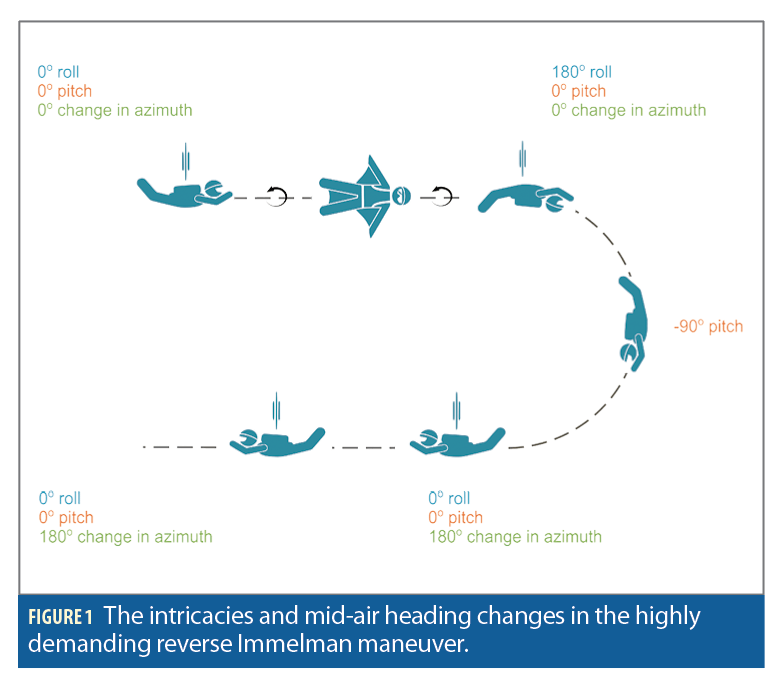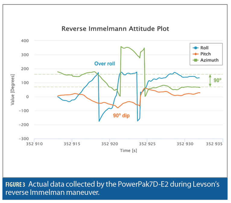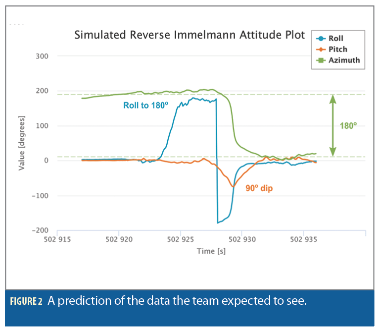 For the highly demanding reverse Immelmann, the crew expected to see a 90-degree change in azimuth from start to finish, a.360-degree rotation in roll, and a –90 degree change in pitch, returning back up 90 degrees.