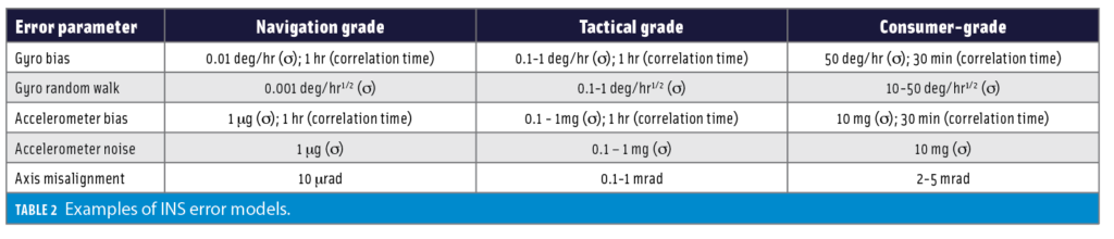 Table 2 shows typical error parameters for different INS grades.