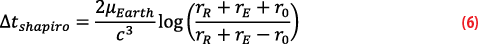 •  is the Shapiro effect, being the effect on the signal propagation due to Earth gravitational field;