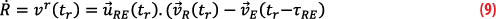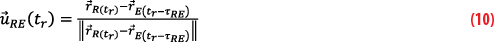 with  and  are the position of receiver and emitter COM respectively, and τRE being the transition time, τRE=c(tr-te);