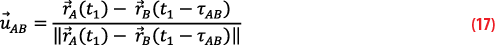 Where  is the unitary vector of the line of sight which is computed at the epoch tr of the measurement: