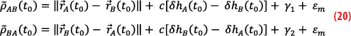 Equations 19 and 20 deal with the same geometric distance at the common epoch and the same clock biases. This allows separating the clock from the orbit problems by calculating dual one-way ranging: