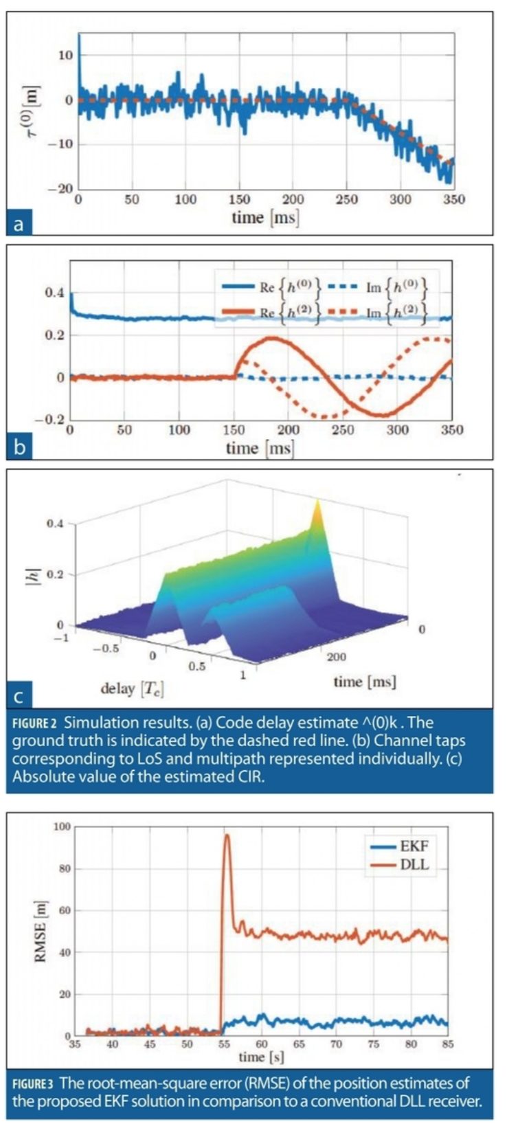 This article studied the case of GNSS in multipath environments and proposed a multipath estimating and mitigation algorithm. It consists of an EKF replacing the conventional DLL.