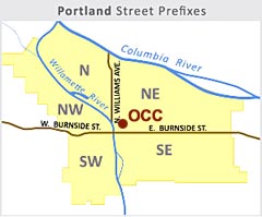 Portland, Oregon is divided into four quadrants, with the streets laid out in a grid. The Willamette River divides the city into east and west and Burnside Street divides it into north and south. It’s easy to find your way around, but somewhat tricky to drive in the center of the city, since all of the streets are one-way.