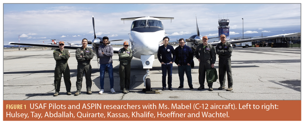 The MATRIX SDR was used to post-process the stored data. Figure 1 shows the C-12 aircraft, known as Ms. Mabel, along with ASPIN researchers and USAF pilots. Figure 2 shows the hardware setup with which Ms. Mabel was equipped.