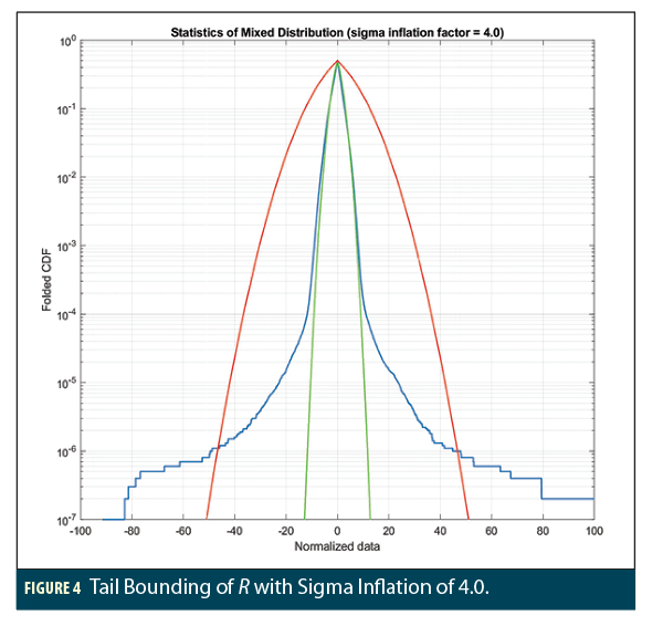 While this degree of inflation is larger than what is typically required, this numerical example points out the difficulty of using nominal statistics based on hundreds or even thousands of independent samples to try to bound errors at probabilities of 10-5 and below. Fat tails (when compared to normal distributions) are commonly present and should be assumed to exist absent strong theoretical and statistical evidence to the contrary. However, when they are present, large sigma inflation factors will likely degrade system performance and availability. The analytical error bounding methods to be described in a future column are specifically focused on applying system-specific knowledge and statistical theory to lower the required inflation where possible.